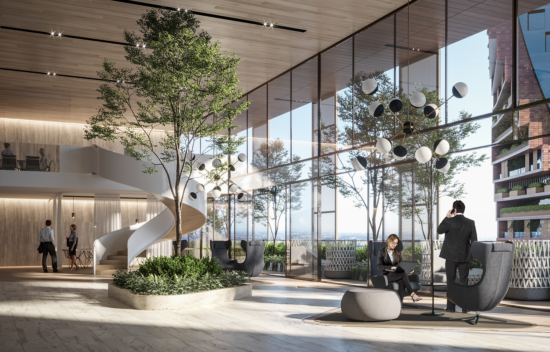 The next evolution of workplace design, with co-working, sustainability, state-of-the-art technology and greenery.